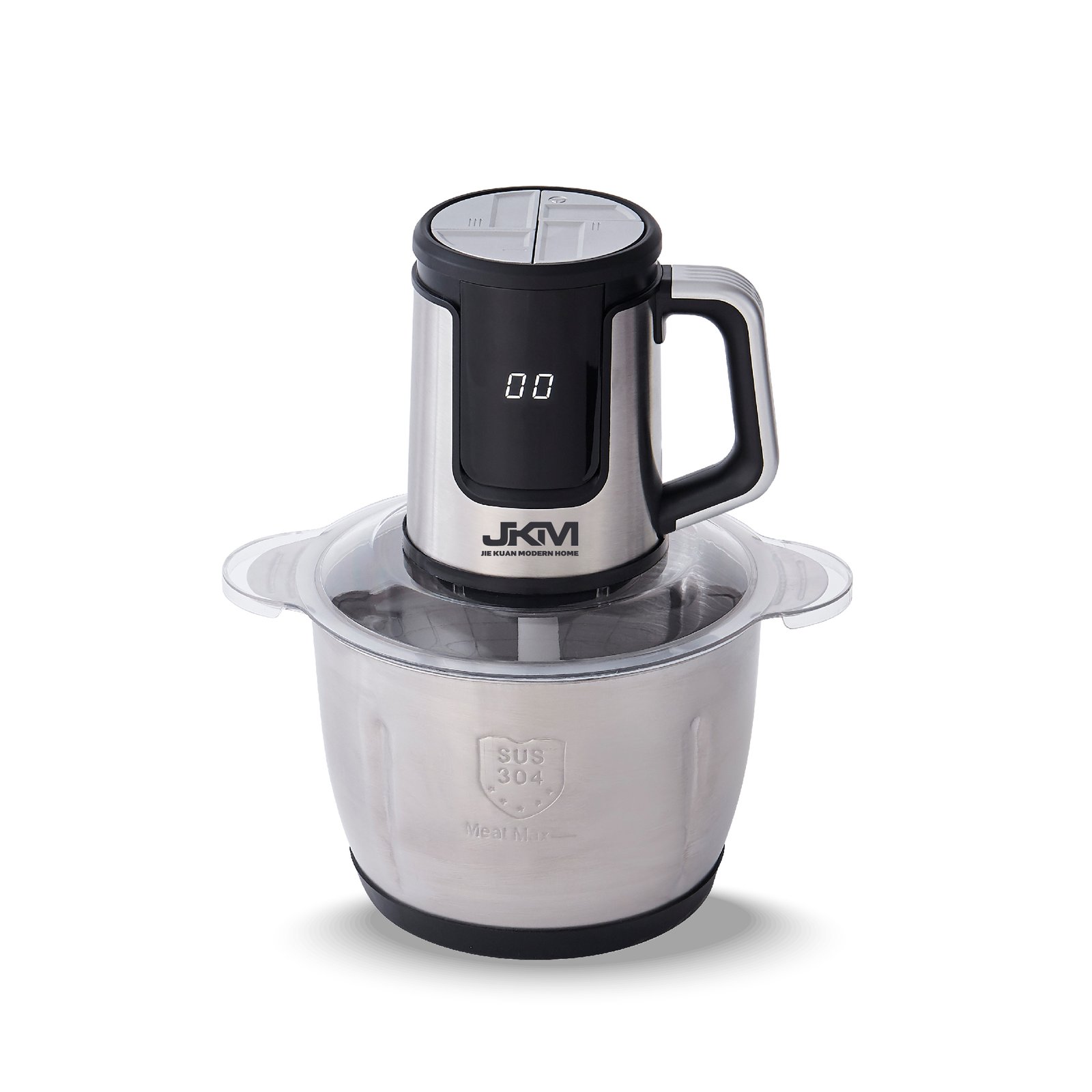- مفرمة اللحم JKM مزودة بوعاء زجاج بسمك 8 مم بتصميم أذنين مزدوجتين على جانب الكوب.