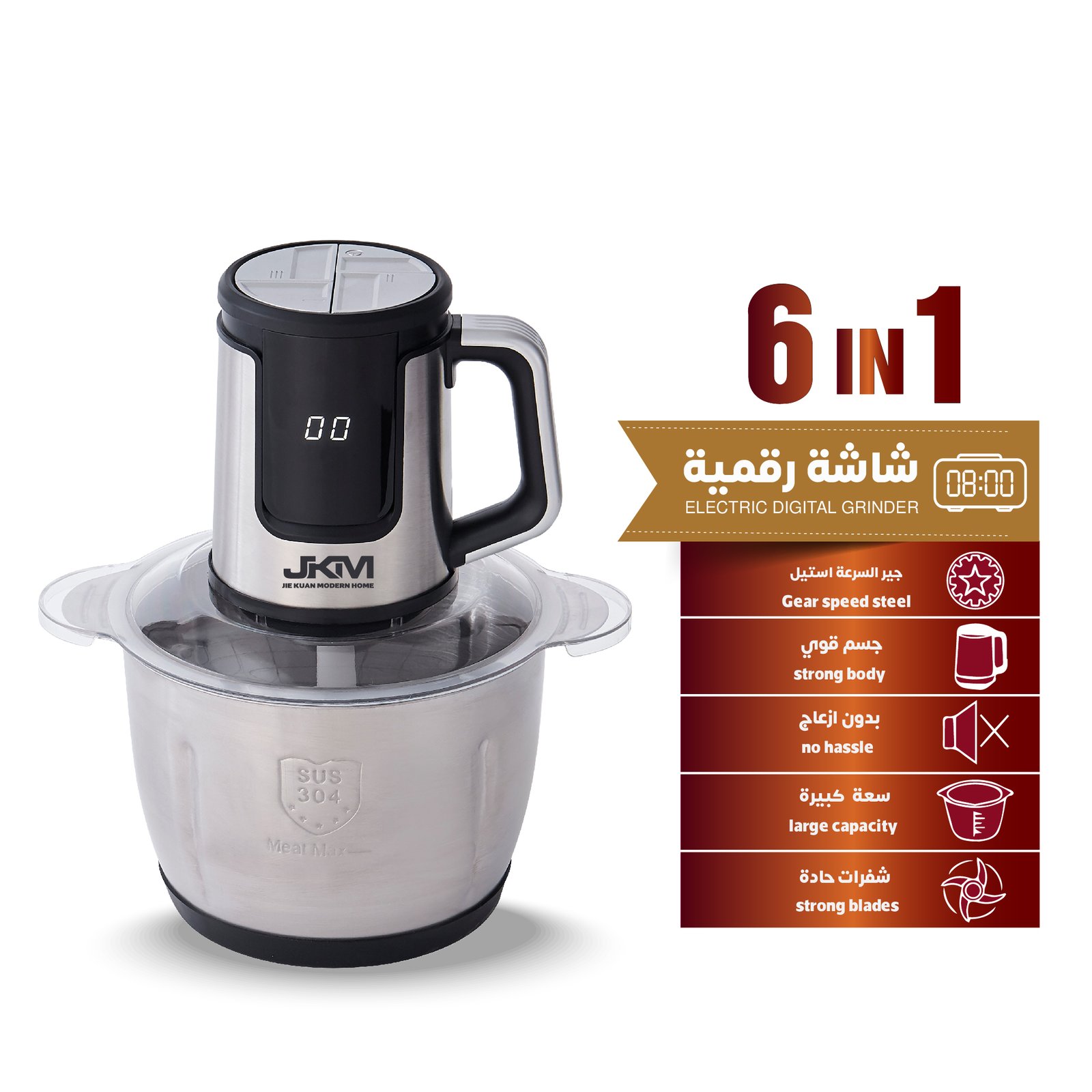 - مفرمة لحم كهربائية بسعة كبيرة 3 لتر لاستيعاب كميات كبيرة من الطعام.