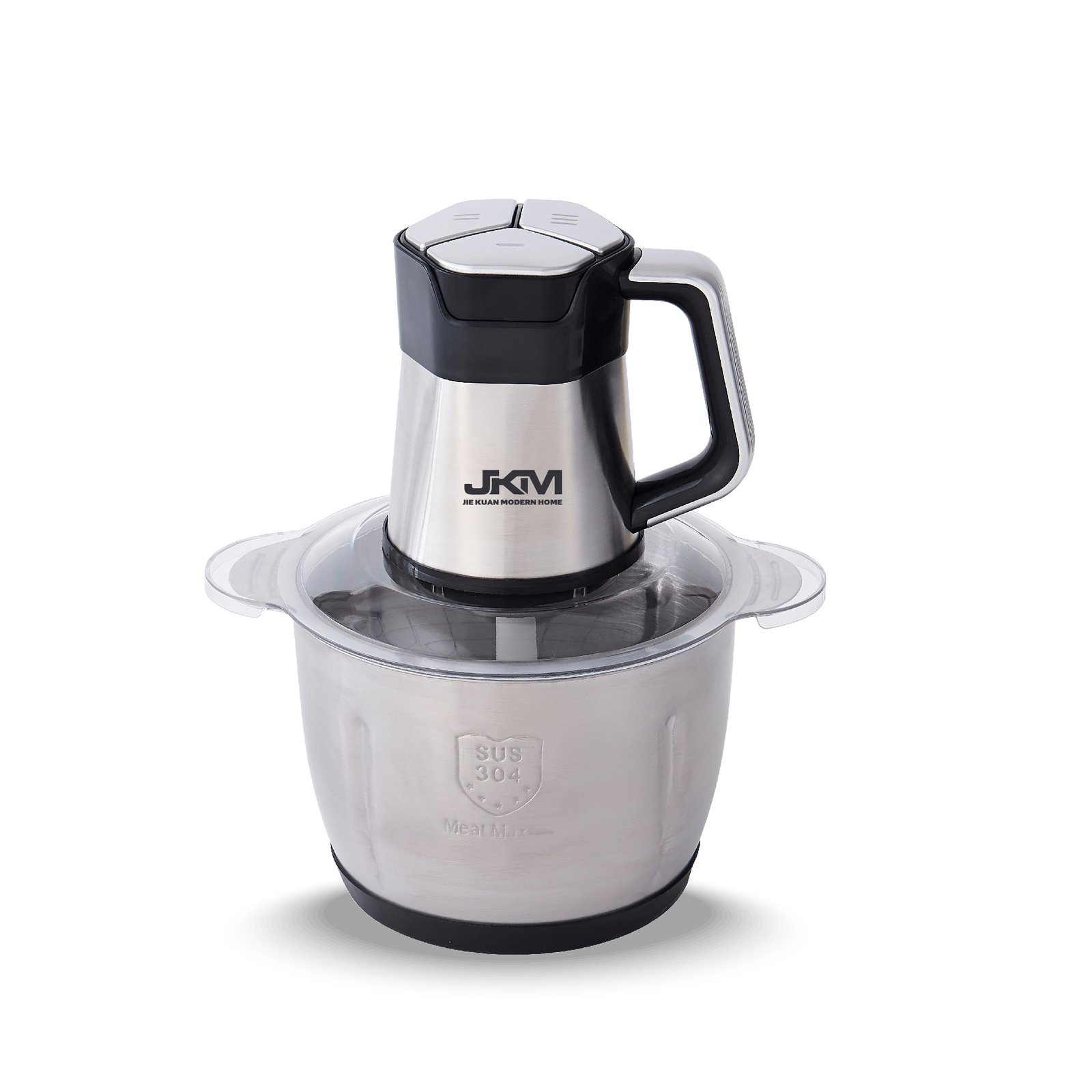 • مفرمة اللحم JKM مزودة بوعاء زجاج بسمك 8 مم بتصميم أذنين مزدوجتين على جانب الكوب.
