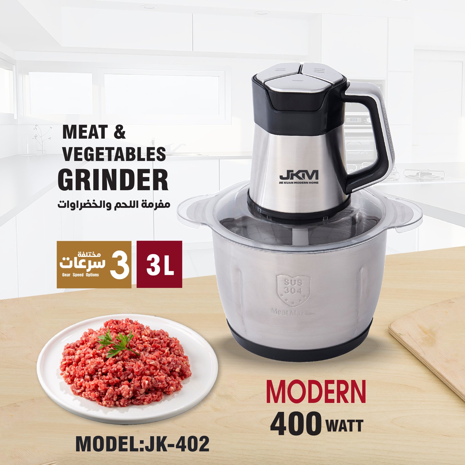 • القوة الكهربائية: مطحنة ذات كفاءة عالية 400 وات.