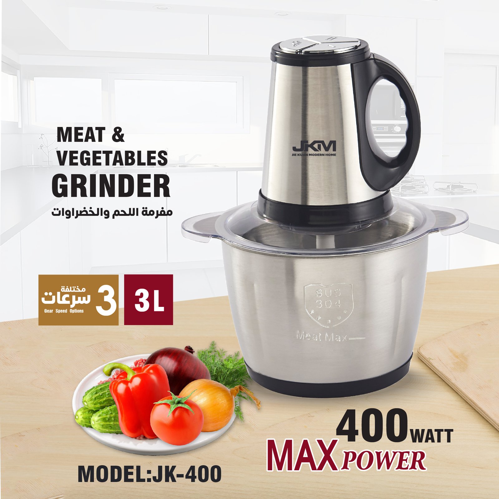 - القوة الكهربائية: مطحنة ذات كفاءة عالية 400 وات.